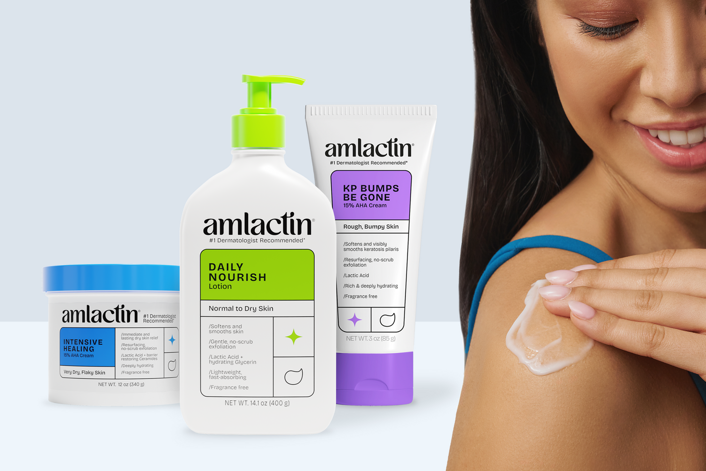 Skin Therapy means it’s more than you’re used to. The Lactic Acid in Amlactin exfoliates while it hydrates, with no scrub. It gently buffs away flaky, bumpy, dry patches so your skin gets deep nourishment that lasts.